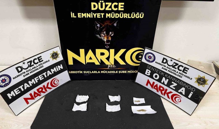 Düzce Cumhuriyet Başsavcılığı Koordinesinde Narkotik Suçlarla Mücadele Şube Müdürlüğü ekipleri sokak çalışmalarını sürdürüyor. Şüpheli E.Ç. isimli şahsın uyuşturucu madde sattığı konusunda bilgiler edinilmesi üzerine fiziki takibe alındı. Takipte şüpheli ve şüpheliden uyuşturucu madde satın alan şahısların üzerinden 10 gram metamfetamin maddesi, 2 gram sentetik kannabinoid maddesi ele geçirildi.