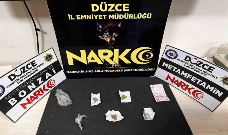 Düzce’de polis ve jandarma ekiplerinin uyuşturucu ile mücadelesi sürüyor. Düzce Cumhuriyet Başsavcılığın koordinesinde Düzce İl Emniyet Müdürlüğü Narkotik Suçlarla Mücadele Şube Müdürlüğü ekiplerince yapılan planlı çalışmada 12 suç kaydı bulunan E.A.’nın (23) üzerinde ve ikametinde arama yapıldı. Yapılan aramada 5 parça halinde 3.7 gram bonzai ve 2 parça halinde 1.3 gram metamfetamin ele geçirildi. Şüpheli E. A. uyuşturucu madde ticareti yapmak suçundan tutuklanırken, şüpheliden uyuşturucu madde satın alan 2 kişi hakkında ise uyuşturucu madde kullanma suçundan adli işlem yapıldı.