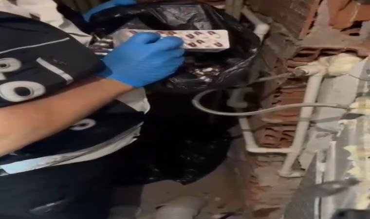 Polisin iknasıyla kapıya dönüştürülen duvarın arkasından elleri yukarıda çıkartılan kişinin C.A. olduğu anlaşıldı. C.A., polis ekipleri tarafından yakalanırken, sığınağa dönüştürülen yerde poşetler içerisinde çok sayıda uyuşturucu nitelikli 3 bin 612 adet hap ele geçirildi. Öte yandan adreste yapılan aramada, 3 tüfek ve 17 tüfek fişeği ele geçirildi.