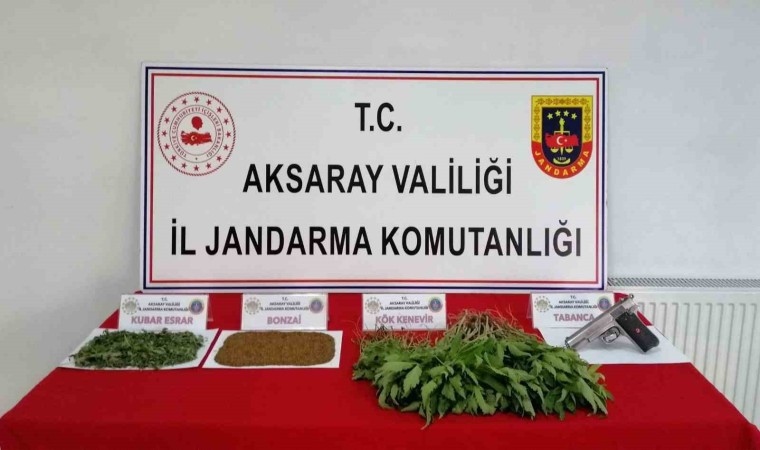 Edinilen bilgiye göre, uyuşturucuyla mücadele çerçevesinde çeşitli çalışmalar yapan İl Jandarma Komutanlığı İstihbarat Şubesi ekipleri merkez mülki sınırlar içeresinde bir şahsın uyuşturucu imal ve ticaretini yaptığı bilgisine ulaştı. Alayhanı Jandarma Komutanlığı ekipleriyle birlikte Aksaray Cumhuriyet Başsavcılığı koordinesinde harekete geçen istihbarat ekipleri merkezde bir ikamete yönelik operasyon düzenledi. Operasyonda M.M.G. isimli şahıs yakalanarak gözaltına alınırken, narkotik köpeğiyle evde yapılan aramada 118 kök kenevir bitkisi, 105 gram sentetik cannobinoid bonzai maddesi, 90 gram kubar esrar ve 1 adet ruhsatsız tabanca ele geçirildi. Gözaltına alınan M.M.G. isimli şahıs sorgulanmak üzere İl Jandarma Komutanlığına götürülürken buradaki işlemlerinin ardından sevk edildiği adli makamlarca tutuklanarak cezaevine gönderildi.