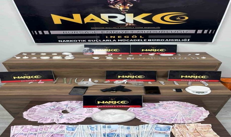İnegöl İlçe Emniyet Müdürlüğü Narkotik Büro Amirliği ekipleri, Yunus Emre Mahallesi’ndeki bir evde uyuşturucu madde satışı yapıldığı bilgisi üzerine İnegöl Cumhuriyet Savcılığı’nın talimatıyla eve operasyon düzenledi. Operasyonda şüpheliler Zafer A. (38) ile sevgilisi Sema B. (33) yakalanarak gözaltına alındı. Yapılan aramada evin odalarında satışa hazır 1 kilogram metanfetamin, bir miktar uyuşturucu hap, ruhsatsız silah, hassas terazi ve uyuşturucu satışından elde edilen 50 bin TL ele geçirildi. Sorgulamanın ardından adliyeye sevk edilen şüphelilerden Zafer A. tutuklanırken, Sema B. adli kontrol şartıyla serbest bırakıldı.