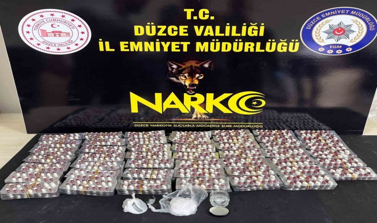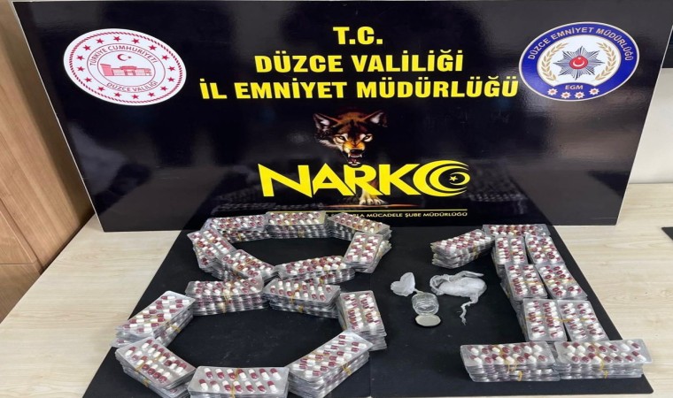 Düzce Cumhuriyet Başsavcılığı koordinesinde uyuşturucu kullananlara ve ticaretini yapanlarla mücadele bütün hızıyla devam ediyor. Bu çerçevede Düzce İl Emniyet Müdürlüğü Narkotik suçlarla Mücadele ekiplerince yapılan risk analizi çalışmalarında B.F. ve T.Y. isimli şahısların iller arasında uyuşturucu madde taşıyarak ticareti yaptığı belirlendi. Şahısları takibe alan ekipler, otobüs terminalinde yolcu otobüsünden iner inmez şahısları göz altına aldı. Şahısların yapılan üst ve valiz aramasında toplam 2675 adet sentetik ecza maddesi, 1 parça halinde 35 gram metamfetamin maddesi ele geçirildi.