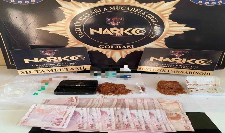 Edinilen bilgilere göre, Gölbaşı ilçesi Narkotik Suçlarla Mücadele Büro Amirliği ekipleri uyuşturucuyla mücadele çalışmaları kapsamında yaptıkları devriye görevi sırasında durumundan şüphelendikleri M.Y., isimli şahsı durdurarak aradı. Yapılan aramalarda 6,40 gram metamfetamin maddesi, 28.67 gram sentetik kannabinoid maddesi, 144.54 gram sentetik kannabinoid hammade sıvısı, 1 adet uyuşturucu kullanma aparatı ile uyuşturucu ticaretinden elde edindiği değerlendirilen 4 bin 350 TL ele geçirildi. Uyuşturucu maddeleri muhafaza altına alınırken şahıs ise polis merkezine götürüldü. Burada işlemleri tamamlanan şahıs sevk edildiği Gölbaşı Adliyesi’nde sevk edildiği mahkemece tutuklanarak cezaevine gönderildi.