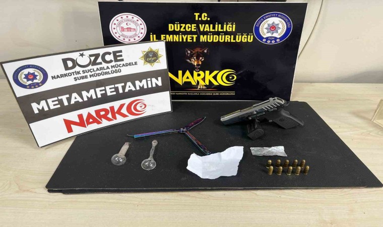 Düzce Cumhuriyet Başsavcılığı koordinesinde Narkotik Suçlarla Mücadele Şube Müdürlüğü ekipleri Çay Mahallesinde operasyon gerçekleştirdi. Bu çerçevede Uyuşturucu Madde Ticareti Yapmak Suçundan O.O.Ö. ve İ. G. isimli şahısların üzerinde ve ikametlerinde yapılan aramada, 6 gram metamfetamin, 1 adet ruhsatsız tabanca, uyuşturucu madde kullanımı ve satımına yönelik aparatlar ve 1 adet kelebek tabir edilen bıçak ele geçirildi. Uyuşturucu madde ticareti Yapmak suçundan işlem gören O. Ö. isimli şahıs adli kontrol şartıyla serbest bırakılırken, İ. G. isimli şahıs ise Düzce Sulh Ceza Hakimliği tarafından tutuklandı. Ayrıca Şüphelilerden uyuşturucu madde satın aldığı tespit edilen 2 kişi hakkında ise uyuşturucu madde kullanmak suçundan adli işlem yapıldı.