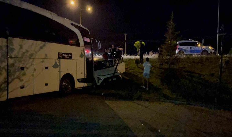 Bolu’da D-100 Karayolu’nda sürücüsünün uyuyakaldığı otomobil, yoldan çıkarak bir otelin otoparkına daldı. Meydana gelen kazada park halindeki yolcu otobüsü ve aydınlatma direği zarar gördü.