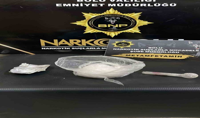 Edinilen bilgiye göre, Bolu İl Emniyet Müdürlüğü Narkotik Suçlarla Mücadele Şube Müdürlüğü ekipleri tarafından şehir merkezinde uyuşturucu ve uyarıcı madde ticareti, kullanımı ve aracılığının engellenmesine yönelik çalışma yürüttü. Yapılan çalışmalar çerçevesinde şüpheli hareketler sergileyen M.B., şehir merkezinde polis ekipleri tarafından durduruldu. M.B.’nin üzerinde ve eşyalarında aramalar yapıldı. Yapılan aramalarda 106,44 gram metamfetamin maddesi ve uyuşturucu kullanma aparatı ele geçirildi.