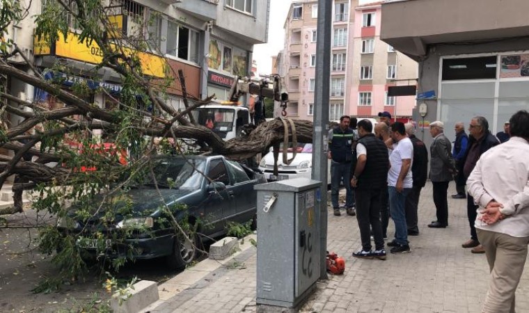 Tekirdağ’ın Çorlu ilçesinde üzerine ağaç devrilen otomobil kullanılamaz hale geldi. Olayda şans eseri yaralanan olmadı.
