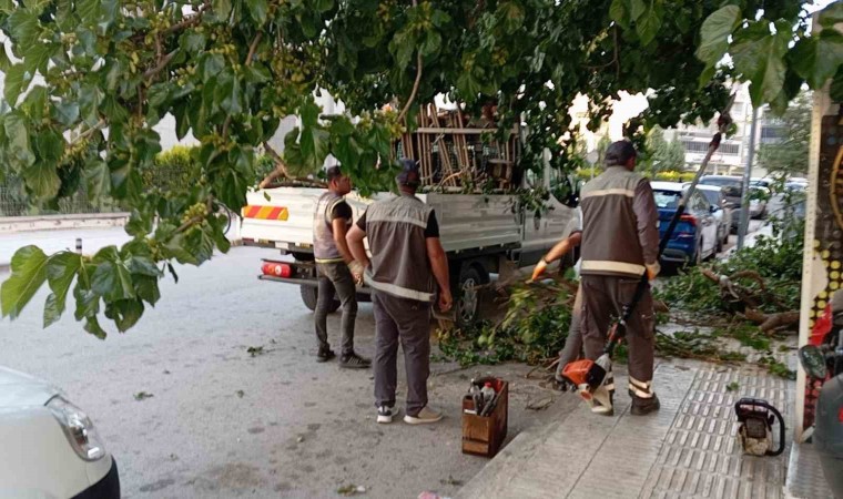 Öte yandan, bir kısmı yol üzerinde duran dal parçaları Çorum Belediyesi Park ve Bahçeler Müdürlüğü ekipleri tarafından kesilerek yol üzerinden kaldırıldı.
