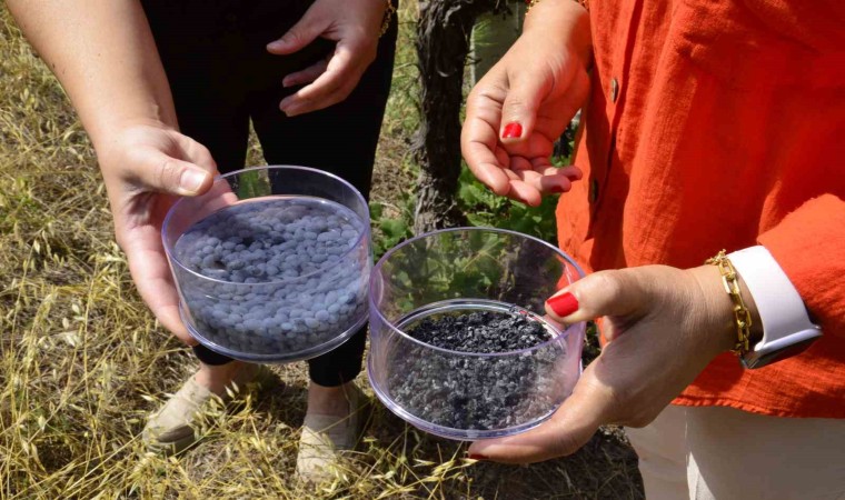 Sürdürdükleri çalışmalarda güzel sonuçlar aldıklarını vurgulayan Uysal, denemelerinde sulamaya olan ihtiyacın azaldığını gözlemlediklerini ifade etti. Hidrojellerin üretim aşamasından da bahseden Uysal, şöyle devam etti: "Asmalar kış dönemine girdiği zaman kuruyor ve budanması gerekiyor. Budanan asmaların dallarını biyokömür adı verilen bir teknikle kömürleştiriyoruz. Bu ürettiğimiz kömürü bu biyohidrojellerin içerisine ekliyoruz. Bizim ürettiğimiz hidrojeller, polimerik bir malzemedir. Jel yapısında jelatin gibi bir malzemedir. Budama atıklarını kömürleştirip içerisine verdiğimiz için kömür içeren boncuklar aslında bunlar. Bunun şöyle bir katkısı oluyor; siz tarımsal atığınızı çok fazla çıkan budama atıklarınızı yine değerli bir ürüne dönüştürmüş oluyorsunuz. Kömüre dönüştürüyorsunuz. Kömür, doğal olarak yer kabuğundan çıkarılıyor. Ama biz bunu kısa bir süre içerisinde laboratuvarımızda aynı özellikte bir biyokömür dediğimiz malzemeye sentezleyerek hidrojellerin içerisine veriyoruz. Bu sayede hem sıfır atık yaklaşımıyla tarımsal atıkları azaltıyor, hem de toprağı karbon içeriğini artırıyoruz."