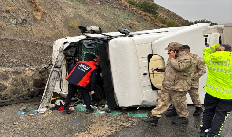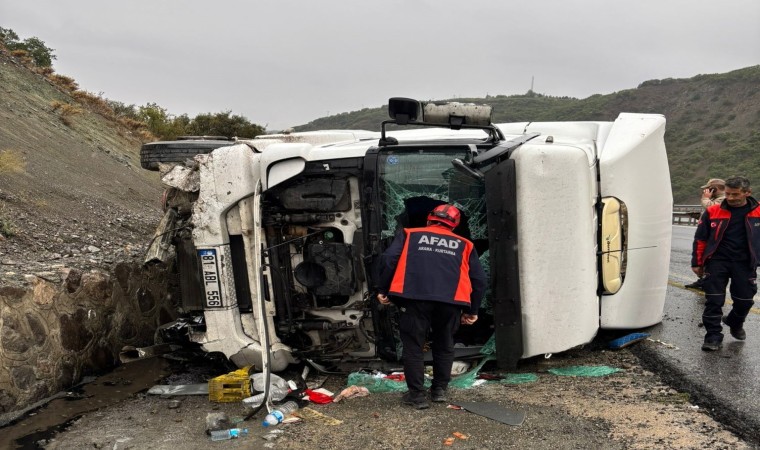 Erzincan’ın Üzümlü İlçesinde tır devrildi, 1 kişi yaralandı.