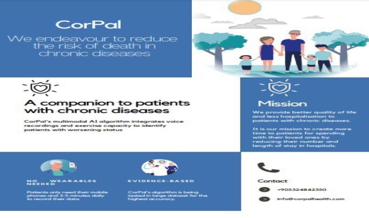 Kalp yetersizliği, diyabet, kanser, Alzheimer gibi uzun dönem takip gerektiren hastalıkların takibinde yapay zekâ destekli yenilikçi çözümler sunan CorPal girişimi, Türkiye’de ilk defa ses, adım ve hareket analizi ile hastalıkların kötüleşmesini erken dönemde tespit eden bir uygulama geliştirdi. Geliştirdiği çözümlerle CorPal, hastaların yaşam kalitelerini arttırmayı ve hastaneye yatışlarını azaltmayı hedefliyor.