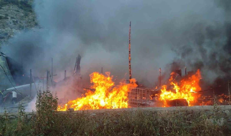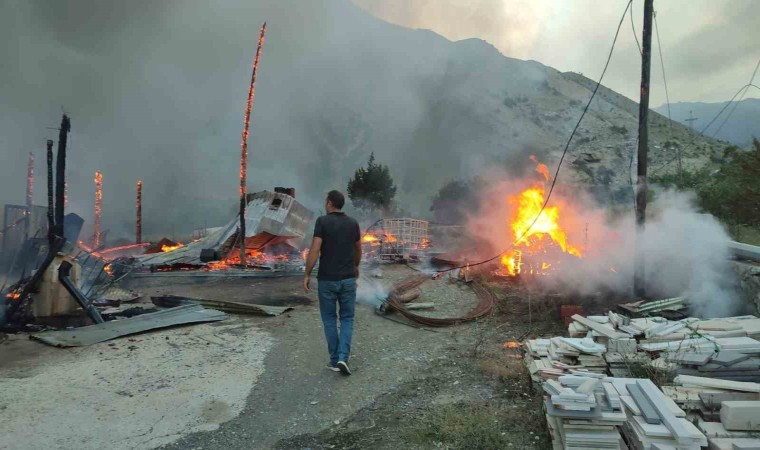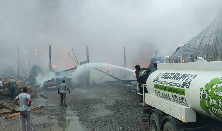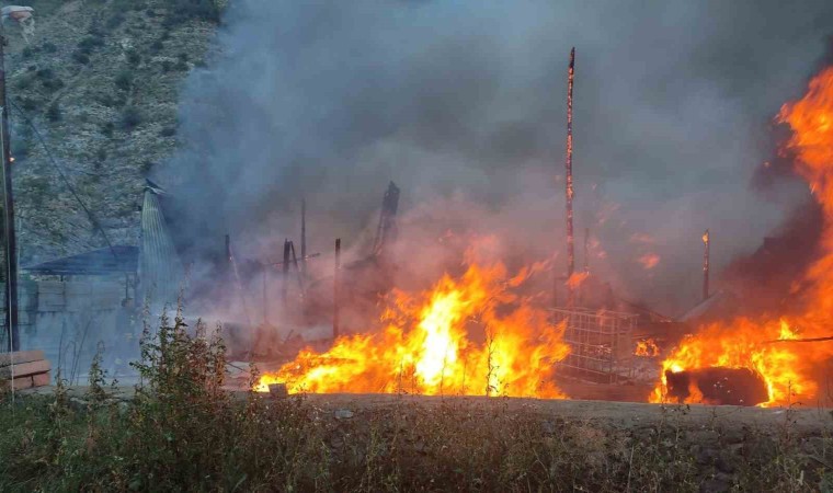 Erzurum’un Uzundere ilçesinde bir yapı markette çıkan yangın korkuttu. Gökyüzüne yükselen alevler ve patlamalar paniğe sebep oldu.