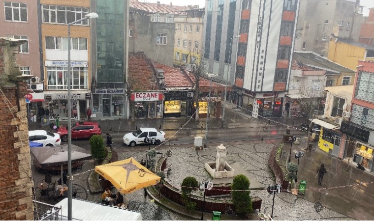 Edirne’nin Uzunköprü ilçesinde aniden başlayan şiddetli yağmur, etkili olmaya devam ediyor. Yollarda su birikintileri oluşurken, yağışa hazırlıksız yakalanan vatandaşlar, saçak altlarına sığındı.