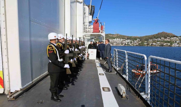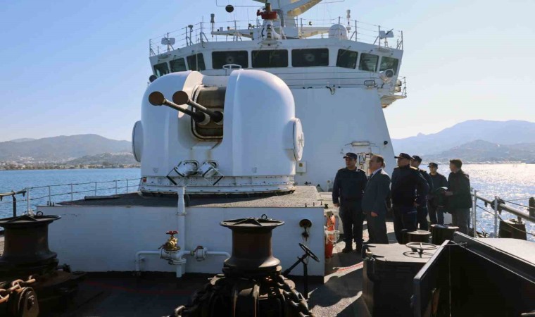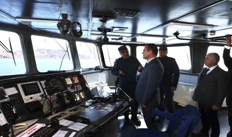Muğla Valisi İdris Akbıyık, TCSG-703 Umut Korvetini ziyaret ederek çalışmalar hakkında bilgi aldı.