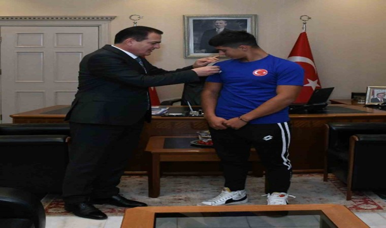 Muğla Valisi İdris Akbıyık Kano sporunda Uluslararası başarı elde eden Kaan Karahan’ı Altın’la ödüllendirdi.