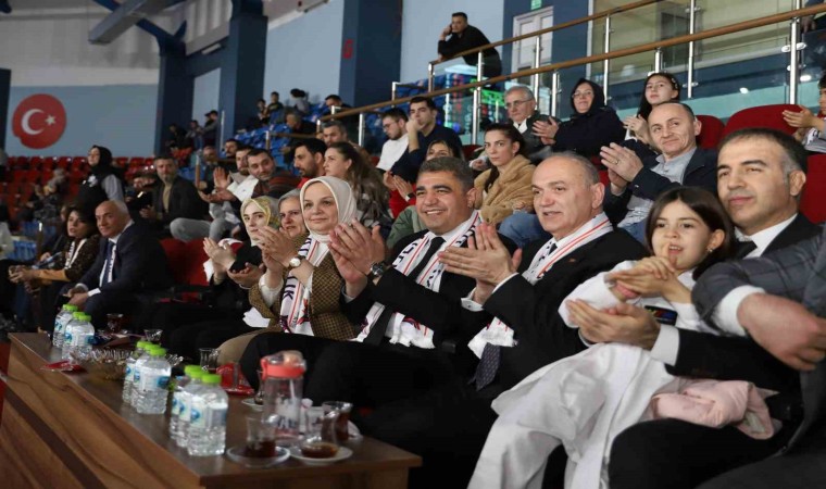 Vali Aslan, maç sonu sporcularla bir araya gelerek hem başarı diledi hem de hediye verdi.