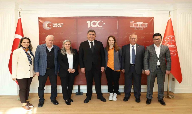 TBBL Kadınlar Bölgesel Basketbol Liginde play-offa kalan Düzce Atletik Kulüp Başkanı Hatun Albayrak Şengüloğlu, teknik heyet ve sporcular, Vali Selçuk Aslan’ı makamında ziyaret etti. Kulüp Başkanı Şengüloğlu, Kadınlar Bölgesel Basketbol Liginde gruplardan çıktıkları play-offlara kaldıklarını söyleyerek, kulüp ile ilgili bilgiler verdi. Vali Selçuk Aslan sporculara başarılar dileyerek her zaman yanlarında olduklarını söyledi.