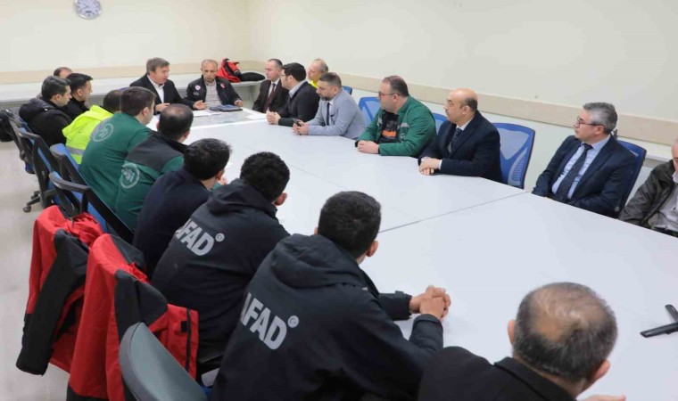 Vali Aydoğdu, göçük altında kalan işçilere ulaşılması için alanda yürütülen çalışmalarda gelinen son durum hakkında yetkililerden bilgi aldı.