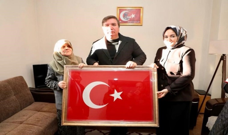 Şehidin annesiyle bir süre görüşen, istek ve ihtiyaçlarını dinleyen Vali Aydoğdu, tüm şehitler için dua ederek, Saniye Yılmaz’a Türk Bayrağı hediye etti.