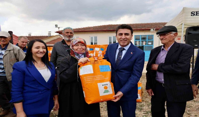 Bilecik Valisi Şefik Aygöl, Pazaryeri ilçesine bağlı Ahmetler köyünde tohum dağıtım programına katıldı.