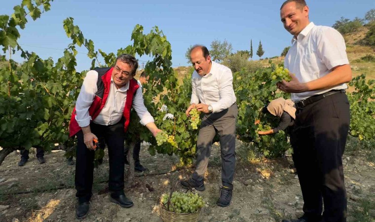 Üretiminin her aşaması Tarım Kampüsünde planlanmış üzümlerin hasadında ise ilk makaslar atıldı, yüzler güldü.