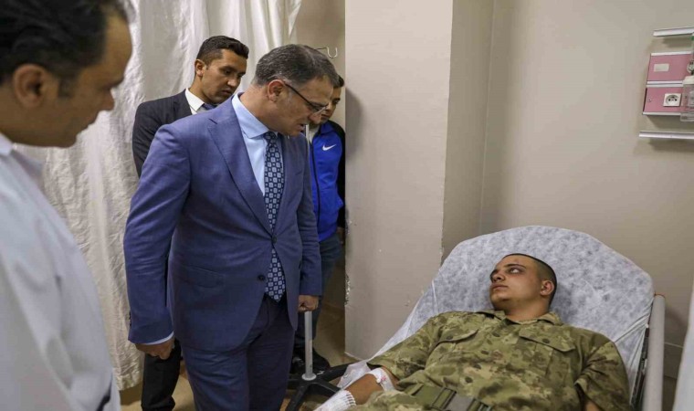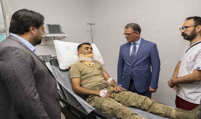 Van Valisi Ozan Balcı, Van-Hakkari karayolu üzerinde meydana gelen trafik kazasında yararlanan askerleri ziyaret etti.