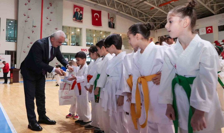 Başarılı sporculara kuşaklarını ve sertifikalarını takdim eden Vali Avni Çakır, tüm sporculara başarı dileyerek, “Gençlik ve Spor Müdürlüğümüz kurslarında devam eden birçok alanda kurslarımız var. Karate kursumuzda yaklaşık 250 çocuğumuzun kuşak heyecanına şahitlik ediyoruz. Onlarca branşta yavrularımıza profesyonel antrenörlerimiz eşliğinde hemen hemen her kademede kurslar düzenliyoruz. Bugün de burada karate kursunun kuşak törenindeyiz. Sağlam kafa, sağlam vücutta bulunur şiarına inanıyoruz. Çocuklarımızın hem daha disiplinli yaşaması, hem daha sağlıklı yaşaması, hem zararlı alışkanlıklardan uzak durması, bilgisayar ya da bağımlılık yapıcı diğer uğraşlardan uzak kalıp daha sporla bütünleşik hayatlarının olması noktasında tüm ekip arkadaşlarımızla beraber yoğun bir çaba içerisindeyiz. Bu anlamda Muş’ta da çok böyle ilgisi yüksek bir veli kitlemiz var. Özellikle eline yavrusunu almış spor kıyafetiyle onu kursuna götüren velileri gördükçe çok mutlu oluyorum. Bu manzaraları ilimiz genelinde arttıracağız” dedi.