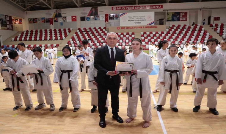 Muş Gençlik ve Spor İl Müdürlüğü bünyesinde yaklaşık 6 yıldır devam eden karate eğitimleri kapsamında 7-18 yaş aralığındaki yaklaşık 250 sporcu karatede sporcularının derecesini belli eden kuşak heyecanı yaşadı.