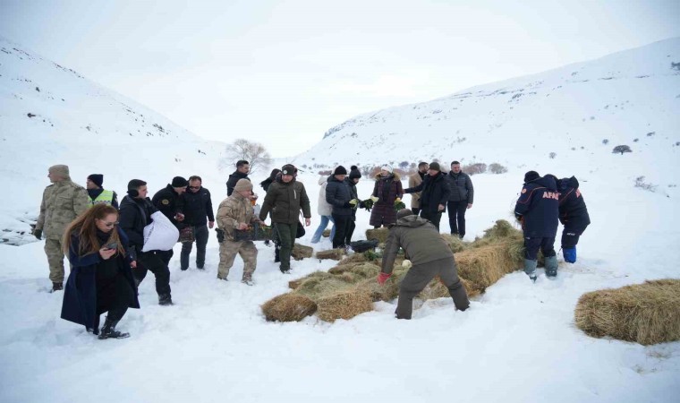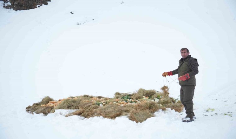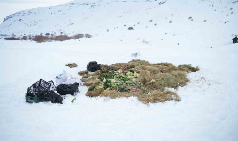 Doğaya bırakılan yemler ise AFAD’a ait kar motorları ile taşındı.