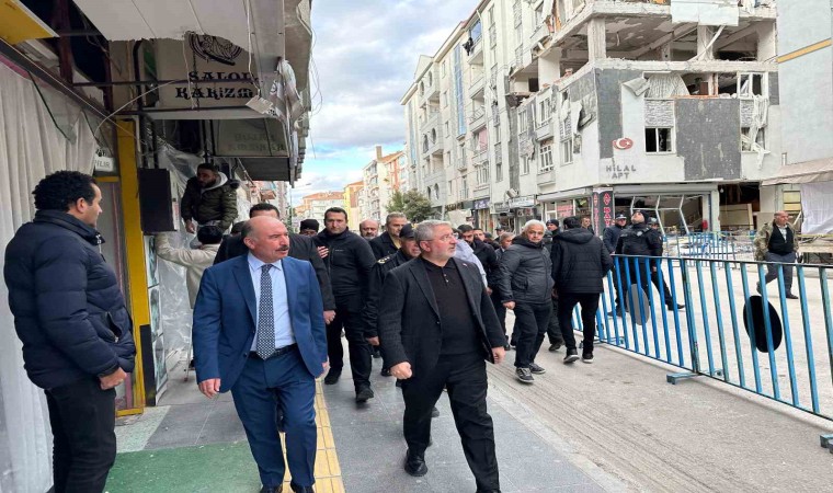 Vali Ali Çalgan ve Belediye Başkanı Halil İbrahim Aşgın, doğal gaz patlamasının yaşandığı Osmancık Caddesi’nde incelemelerde bulundu. 1 kişinin öldüğü, 33 kişinin yaralandığı patlamadan etkilenen vatandaşlar ve esnafları olay bir an olsun yalnız bırakmayan Vali Çalgan ve Bşkan Aşgın, cadde esnafı ve ev sahipleri ile bir toplantı yaptı.