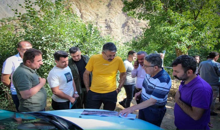 Hakkari Valisi Ali Çelik, Helel vadisinde bulunan 2 bin 300 rakım yükseklikteki içme suyu kaynağından incelemelerde bulundu.