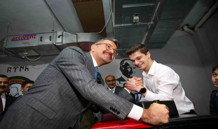 Açılışın akabinde kulüp salonunda bilek güreşi sporcusu ile bilek güreşi yapan Vali Çelik, öğrencilerle birlikte ok da fırlattı.