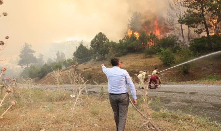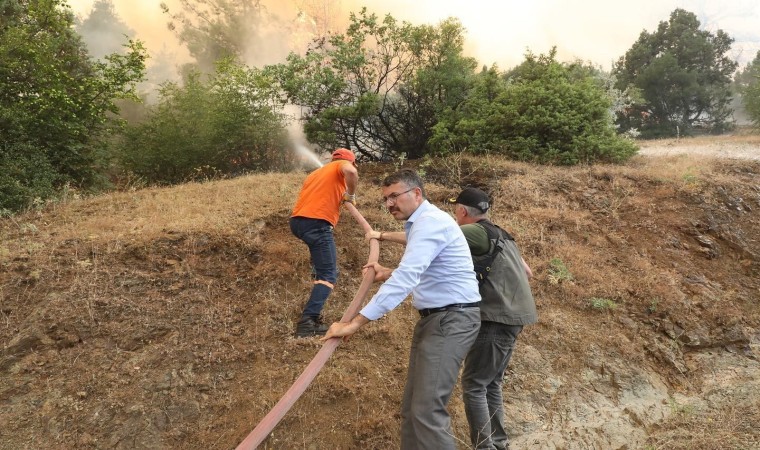 Yangının ilk dakikalarında bölgeye hareket eden Vali Çelik, karadan müdahale ekiplerine de yardım etti. Vali Çelik, vatandaşların da destek verdiği yangınla mücadelede sahada 800’ün üzerinde personel, bir helikopter, 22 arazöz, 8 dozer ve 53 iş makinesinin görev aldığını söyledi.