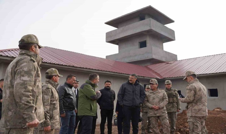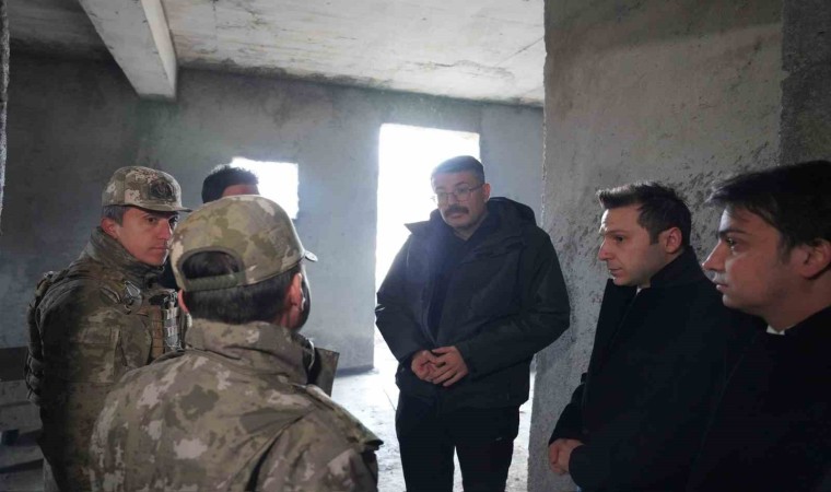 Hakkari Valisi Ali Çelik, yapımı devam eden karakol ve 2 bin 150 metre uzunluğunda, 4 metre yüksekliğindeki beton sınır duvarı çalışmalarını inceledi.