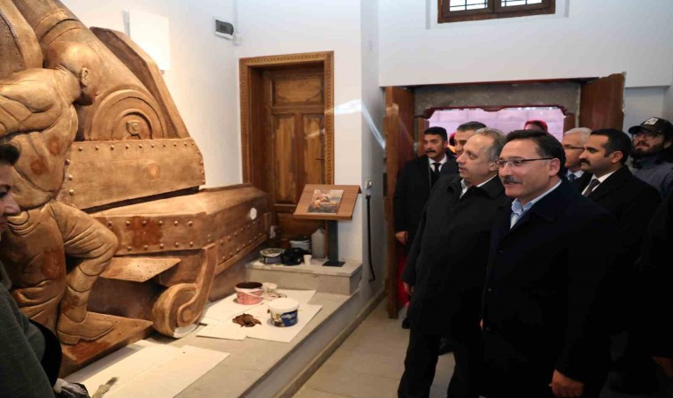 Vali Çiçek, Kiçiköy Mahallesi’nde Osmanlı Kültür Sokağı olarak bilinen Ali Saip Paşa Caddesi’ndeki Talas Belediyesi’ne ait konakta hazırlık çalışmaları son aşamaya gelen Çanakkale’den Cumhuriyete 100. Yıl Sergisi’nde incelemelerde bulundu. Talas Belediye Başkanı Mustafa Yalçın ve Talas Kaymakamı Yaşar Dönmez’in yanı sıra Vali Yardımcıları Abdullah Kalkan ve Ömer Tekeş’in de eşlik ettiği incelemede Erciyes Üniversitesi Öğretim Görevlisi Ahmet Nedim Kilci, Vali Çiçek’e sergideki eserler hakkında bilgiler verdi. İçerisinde bir döneme ışık tutan tarihi kitaplardan, Osmanlı ve düşman askerlerinin kullandıkları alet, silah ve lojistik eşyalara kadar binlerce objenin yer aldığı sergiye hayranlığını ifade eden Vali Çiçek, eserlerin temini için Ahmet Nedim Kilci’ye, eserlerin muhafaza edileceği tarihi konak için Başkan Yalçın’a teşekkür etti.