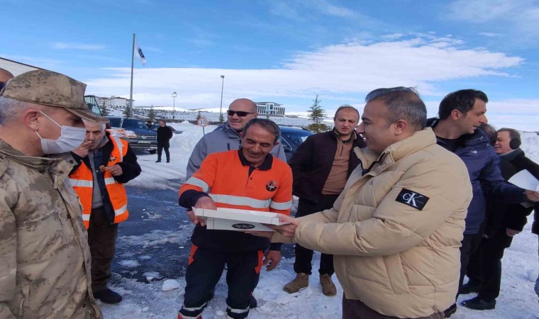 Ardahan Valisi Hayrettin Çiçek, kent genelinde iki gün süren yoğun kar ve fırtına sebebiyle kapanan yollarda çalışma yürüten karla mücadele ekiplerini ziyaret ederek kolaylıklar diledi ve tatlı ikramında bulundu.