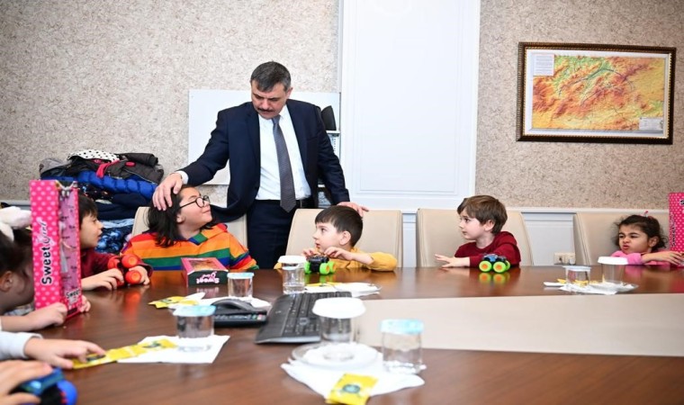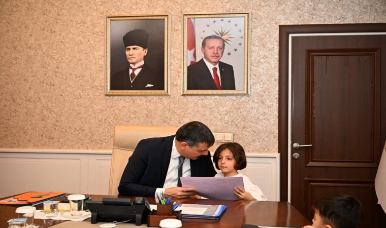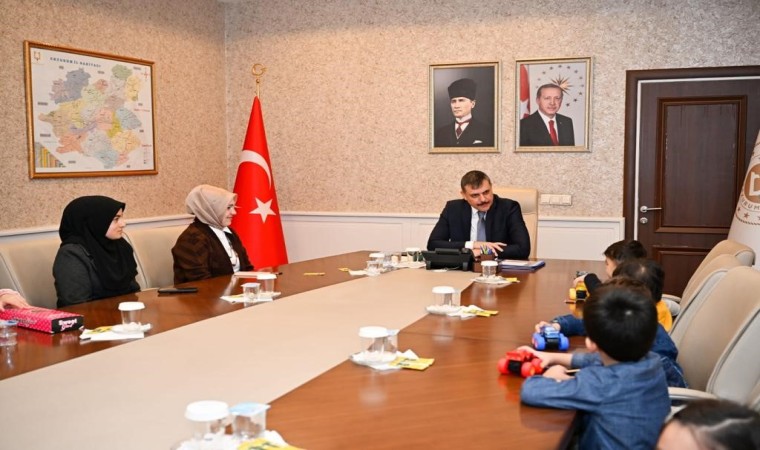 Erzurum Valisi Mustafa Çiftçi minik konuklarını toplantı salonunda ağırladı.