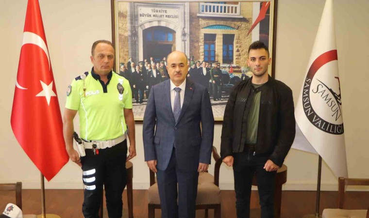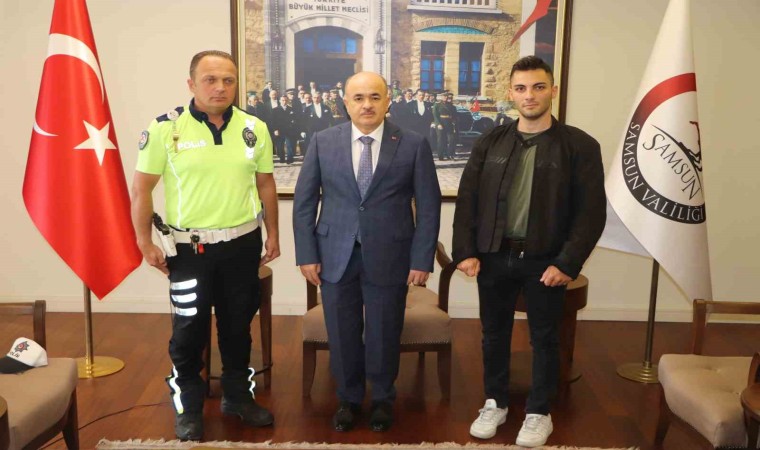 Olaydan sonra Samsun Valisi Zülkif Dağlı’nın makamında Trafik Polisi Alper Gökhan Yıldırım ile motosikleti kullanan Muhammet Fatih Ukte bir araya geldi. Vali Zülkif Dağlı, trafik polisine başarı belgesi vererek tebrik etti. Akabinde açıklamalarda bulunan Vali Dağlı, "Muhammet motosikletiyle gelirken polis memurumuz Alper Gökhan onu babacan tavrıyla hem uyardı hem abilik yaptı hem de ona yol gösterdi. Ona aslında küçük de olsa bir ders verdi. Bu anlamda çok güzel bir yansıma oldu. Ben kendisine bu davranışı için teşekkür ediyorum. Aslında tüm polislerimiz böyle ama burada böyle yansımış oldu. Polis memurumuz güzel bir çalışmaya imza attı. Sayın bakanımız tebriklerini gönderdi. Bizde polis memurumuzu ilk andan itibaren takip ettik. Kendisini biz de takdir ediyoruz. Gördüğümüz gibi başarı belgesini verdik. Ayrıca polis memurumuzu 1 maaş ile de ödüllendirme yapacağız. Bunu çoktan hakkettiğini düşüyoruz. Muhammet ise bundan sonraki hayatında daha dikkatli olacaktır. Motosiklet aslında güzel bir spordur. Ayrı bir zevktir. Ancak önce hayatımızı düşüneceğiz. Gençliğimizi ve geleceğimizi düşüneceğiz. Bu manada Muhammet’te çok daha dikkatli olacaktır. Polisimiz vatandaşımıza yol göstermeye, trafik içinde eğitim vermeye devam edecektir" dedi.