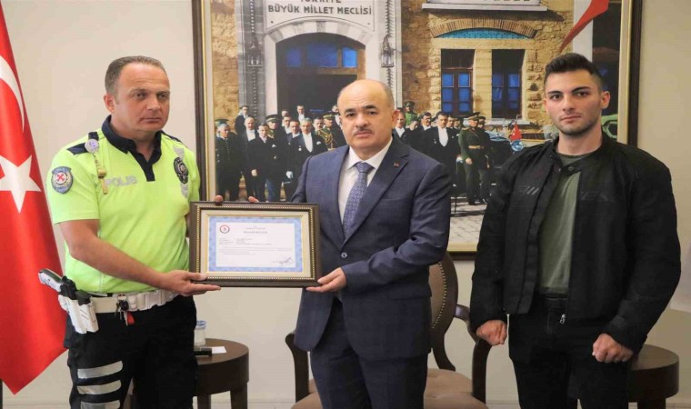Samsun’da hız yapan motosikletli gence babacan bir tavırla uyarıda bulunarak herkesi duygulandıran trafik polisine Samsun Valisi Doç. Dr. Zülkif Dağlı tarafından başarı belgesi verildi. Vali Dağlı, "Aslında tüm polislerimiz böyle ama burada böyle yansımış oldu. Gördüğümüz gibi başarı belgesini verdik. Ayrıca polis memurumuzu bir maaş ile de ödüllendirme yapacağız. Bunu çoktan hakkettiğini düşüyoruz" dedi.