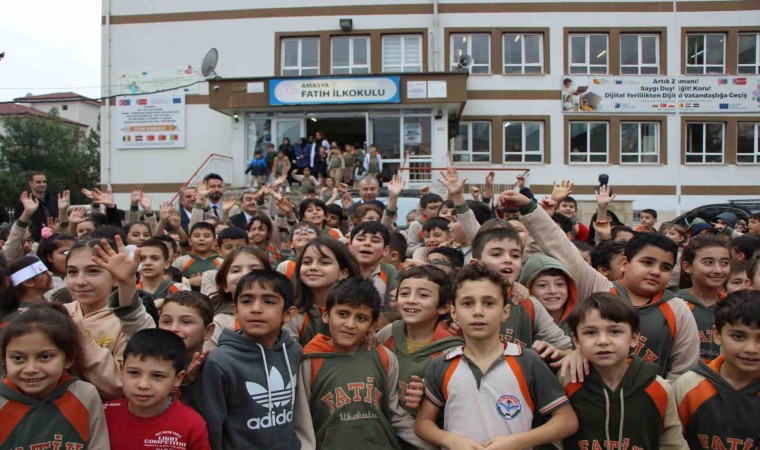 Fatih İlkokulu öğrencileriyle Amasya tarihi ve Yerli Malı Haftası üzerine sohbet eden Doruk, okul müdürü Nevzat Dal’dan eğitim faaliyetleriyle bilgiler almasının ardından çıkışta makam aracı TOGG’un önünde öğrencilerle hatıra fotoğrafı çektirdi. Ziyarette İl Milli Eğitim Müdürü Mehmet Türkmen de yer aldı.