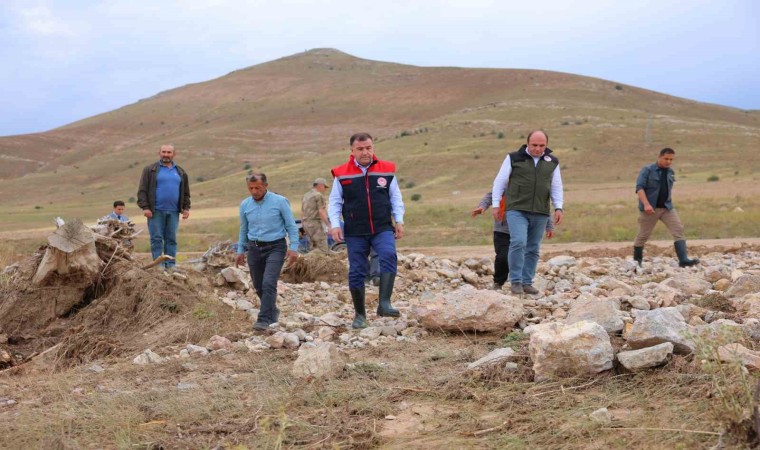 Bayburt Valisi Mustafa Eldivan, Kırkpınar ve Manas köylerinde etkili sağanak yağış, ani sel ve yerel dolu yağışı nedeniyle zarar gören ekili 4 bin dekar tarım arazilerinde incelemelerde bulunarak hasar durumu hakkında bilgi aldı.