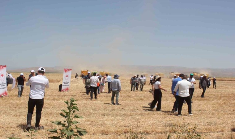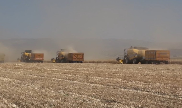 Konuşmaların ardından hazırlıklarını tamamlayan 11 biçerdöverle ilk buğday hasadı yapıldı.