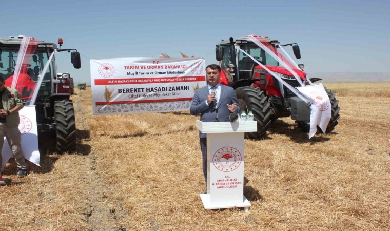 Muş Ovası’nda 1 milyon 800 bin dekar alanda ekimi yapılan hububatın hasadı düzenlenen törenle başladı. Muş Tarım ve Orman Müdürlüğü tarafından Yıldız Alparslan Tarım İşletmesi’nde "Altın Başakların Hasadı ile Muş Ovası’nda Yüzler Gülüyor" sloganıyla hasat töreni düzenlendi. Törende konuşan Muş Valisi İlker Gündüzöz, Muş Ovası’nın su ile buluşmasıyla daha verimli olacağını belirterek, “Hükümet, Türkiye’de tarımın ve hayvancılığın gelişmesi için önemli faaliyetler içerisinde oldu. Arazi toplulaştırması bunun ilk ayağı. Arazi toplulaştırmasıyla daha nitelikli alanlara kavuşuyoruz. Böylelikle tarımsal verimliliğin artması sağlanıyor. Arazi toplulaştırmasında önemli bir noktaya geldik. Özellikle Muş Ovası su ile buluştuğunda daha verimli hale gelecek. 3 milyon liralık birinci kısım ihalesi yapıldı. Yakın zamanda Muş Ovası’nda sulama faaliyeti yapılacak. Bu da randımanı, verimliliği ve rekolteyi artıracak bir husus. Bu demektir ki çiftçilerimiz zenginleşecek. Çiftçilerimiz zenginleştiğinde diğer sektörlerimize de olumlu yansıması olacak. Bu imkanları bize veren devletimize teşekkür ederiz. Bu yıl bolluk ve bereket yılı oldu. İnşallah her yılımız bolluk ve bereketle geçer. Türkiye’den sonra Avrupa’yı besleyen çok önemli ürün çeşidine ve verimliğine sahip Muş Ovası’nı göreceğiz. Muş Ovası verimli bir ova haline gelecek. Bu ovayla övüneceğiz. Çiftçilerimize bereketli hasatlar diliyorum" dedi.
