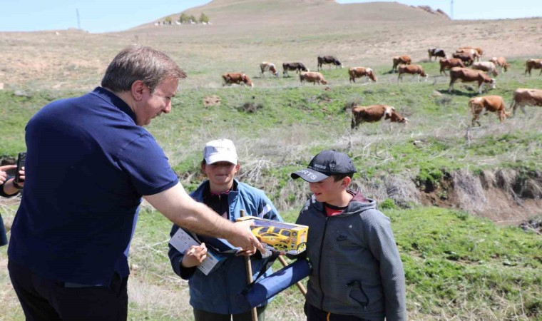 Hafta sonları babalarına yardım etmek için büyükbaş hayvan sürüsünü otaran Sercan, Umut ve Musa Ali isimli 3 kardeşle yakından ilgilenen Vali Aydoğdu, çocuklardan derslerine iyi çalışacaklarına dair söz aldı.