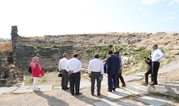 Vali Işın, tiyatro-stadyum kompleksinde yapılacak restorasyon çalışması hakkında kazı başkanı Prof. Dr. Gökhan Coşkun’dan bilgiler aldı.