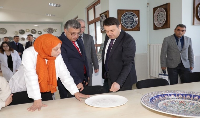 Vali Işın, çini sanatının gelecek nesillere aktarılmasına katkılarından dolayı Üstünkaya’ya teşekkür etti.