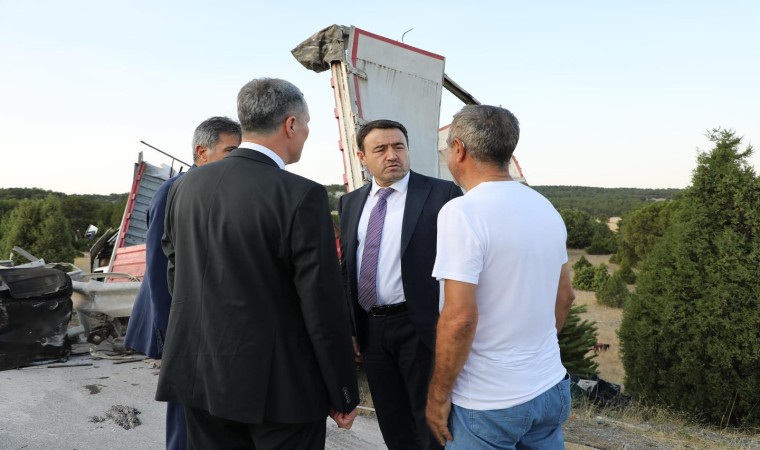 Kütahya Valisi Musa Işın, Altıntaş ilçesi ziyaretinden dönüş yolunda trafik kazasını fark ederek kazazedelerin yardımına koştu.