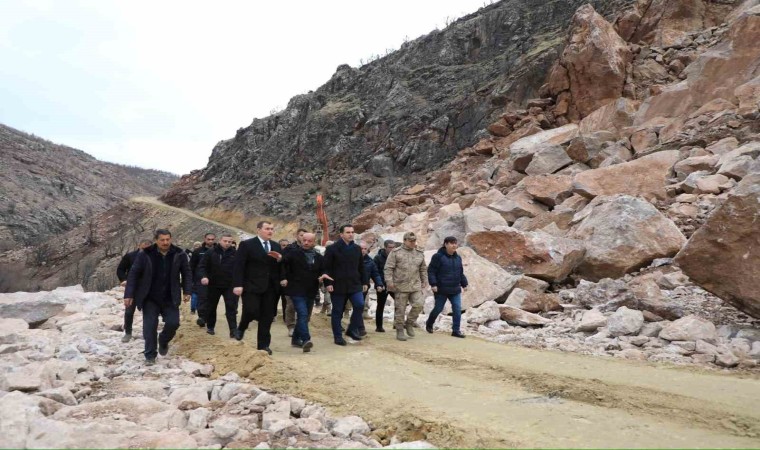 Bitlis Valisi Ahmet Karakaya, Mutki Kaymakamı Onur Yılmazer, İl Jandarma Komutanı Tuğgeneral Zafer Tombul ve beraberindeki heyet ile birlikte, Mutki ilçesinde yapımı tamamlanan Meydan-Yazıcık güvenlik yolu bakım ve onarım çalışmalarını inceledi. Toplam uzunlukları 21,5 kilometre olan, içeriğinde menfez, köprü ve duvar sanat yapıları bulunan, mezralar dahil 18 köyün ulaşımını kolaylaştıracak 1. kat ve 2. kat asfalt sathi kaplama yol ağında incelemelerde bulundu. Çalışması devam eden Yanıkçakır ve Yazıcık güvenlik yolunun mezralar dahil 12 köyün ulaşımını kolaylaştıracak olan yol ağındaki heyelan temizleme işlerini yerinde inceleyen Vali Karakaya, İl Özel İdaresi Genel Sekreteri Adem Aydoğdu’dan bilgi aldı. Vali Karakaya, daha sonra Mutki ilçe girişindeki polis ve jandarma yol kontrol noktası, Meydan Jandarma Karakol Komutanlığı ve Yazıcık Jandarma Karakol Komutanlığı’nı ziyaret etti. Burada görev yapan kahraman kolluk kuvvetleri ile bir araya gelerek görevlerinde başarılar dileyen Vali Karakaya’ya ziyaretlerinde ayrıca İl Özel İdaresi Genel Sekreteri Adem Aydoğdu ve Bitlis İl Genel Meclis Başkanı Ali Akın eşlik etti.