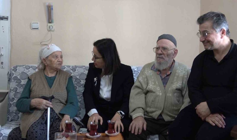 Vali Kaya’nın bir sonraki durağı ise Akköy’de yaşayan 63 yıllık evli olan Hamide (80) ve Osman Cinemre (85) çiftinin evi oldu. Kaya, burada aile ile sohbet ederken Hamide Cinemre’ye hediye takdim etti.