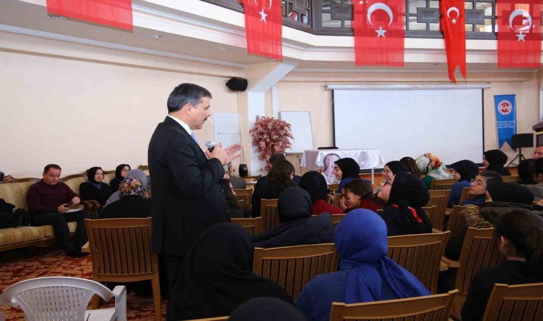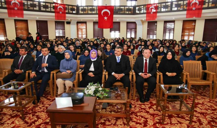 Erzurum Valisi Mustafa Çiftçi, eşi Azime Çiftçi ile birlikte Palandöken Şehit Hasan Yılmaz Kız Anadolu İmam Hatip Lisesi Fen ve Sosyal Bilimler Proje Okulu öğrencileri ile bir araya geldi